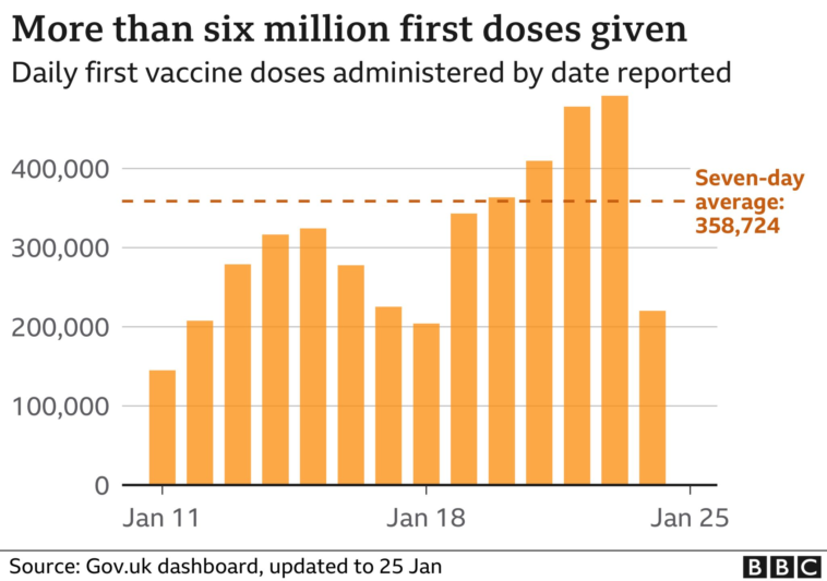 “I’m confident we will meet our mid-February target and continue beyond that,” he told the BBC, referring to the goal of giving a first dose to the 15 million people in the top four priority groups by then.