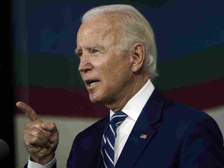 Joe Biden speaks about economic recovery during a campaign event at Colonial Early Education Program at the Colwyck Center in July. In an interview with Stephen Colbert, the president-elect defended his son Hunter, whose tax affairs are under investigation.