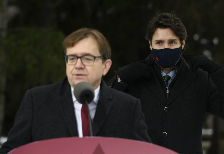Minister of Environment and Climate Change Jonathan Wilkinson answers a reporter’s question during an announcement on the government’s updated climate change plan, in the Dominion Arboretum in Ottawa, on Dec. 11, 2020.