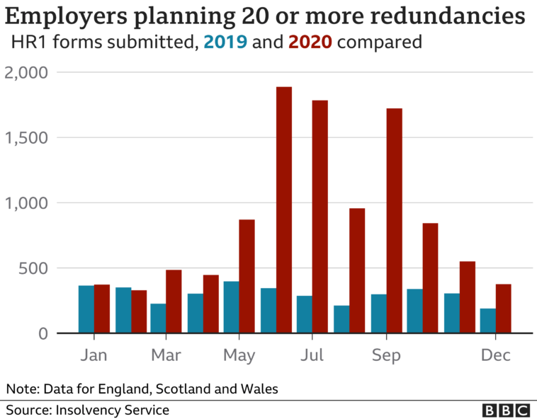 Large parts of the British economy were brought to a standstill for weeks on end during 2020 by the measures imposed to contain Covid-19, and many employers were forced to cut staff as a result.