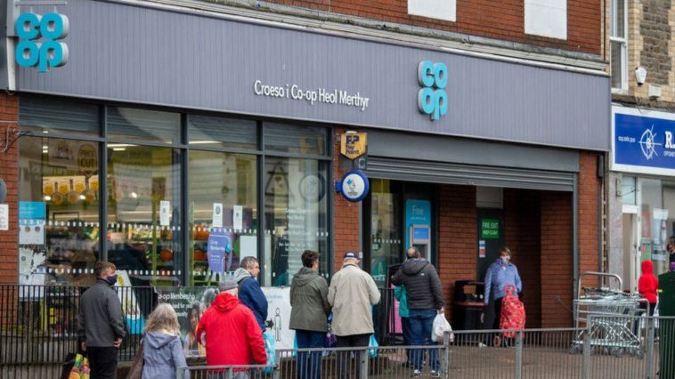 Long queues were seen outside some of the Co-op’s convenience stores from Sunday amid the snow, and customers were encouraged to pay using cash.