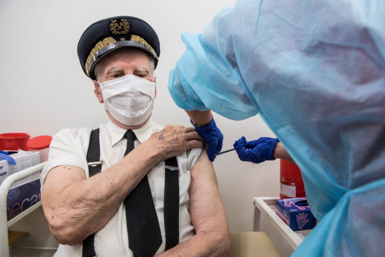 A man receives a vaccination against the coronavirus disease (COVID-19) at the University Hospital in Wroclaw, Poland [Tomasz Pietrzyk/Agencja Gazeta/Reuters]