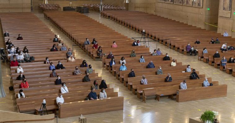 The Archdiocese of Los Angeles, the largest of its kind in the U.S. with more than 5 million Catholics, cautiously advised “parishes who choose to return” to indoor worship to follow the singing and room-capacity rules, in addition to requiring physical distancing and face masks.