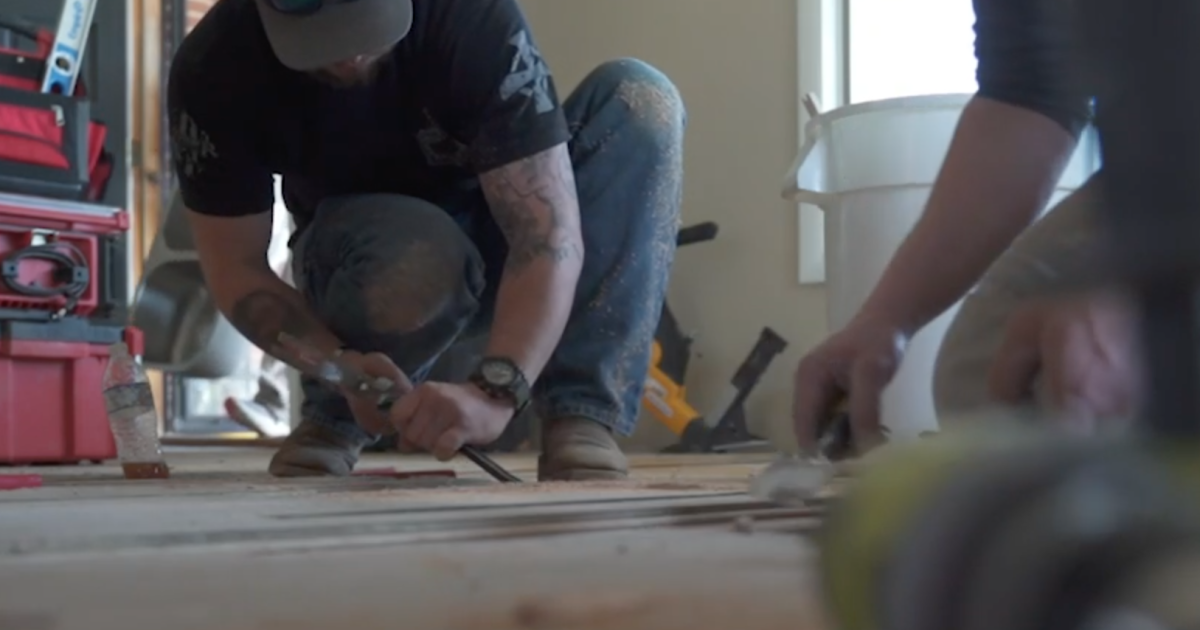 Multiple local contractors showed up to help finish Bonnie’s construction projects. Chris Hock of Earth Saving Solutions donated and installed a brand new countertop, but refused to stop there. Members of his team went to work on multiple projects around Bonnie’s home, including installing the hardwood floor.