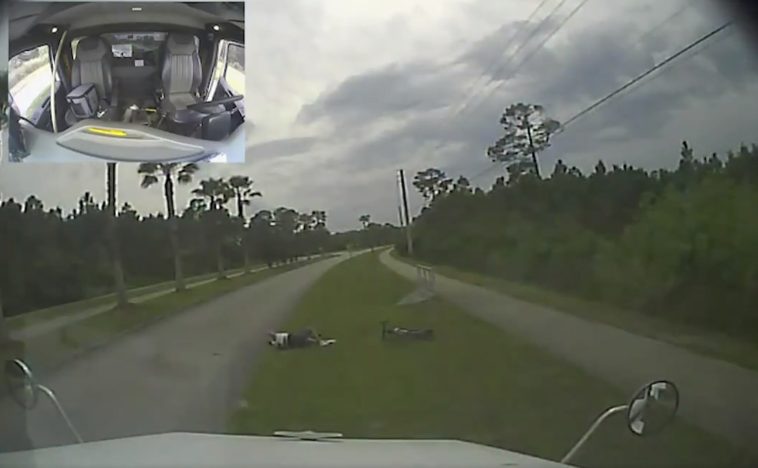 He also posted footage captured from a Waste Pro truck’s dashcam, which shows the accident in real-time, then the top Sheriff lying on the ground. (below)