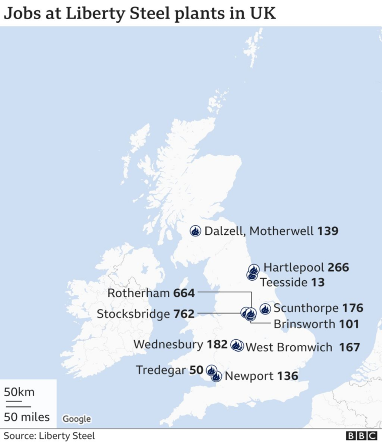 There are about 3,000 staff directly employed at Liberty’s UK sites, which include Rotherham, Motherwell and Newport, and a further 2,000 jobs at GFG Alliance in the UK.