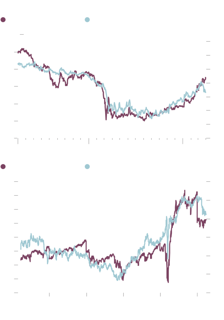 I expect the divergence on the chart to close and the way it happens will be an important indicator for investors. A fall in yields (the purple line) to meet the blue line would suggest markets might be ahead of themselves in terms of pricing in the economic recovery. Conversely, a resumption of small-cap outperformance would suggest the postpandemic business recuperation is on track.