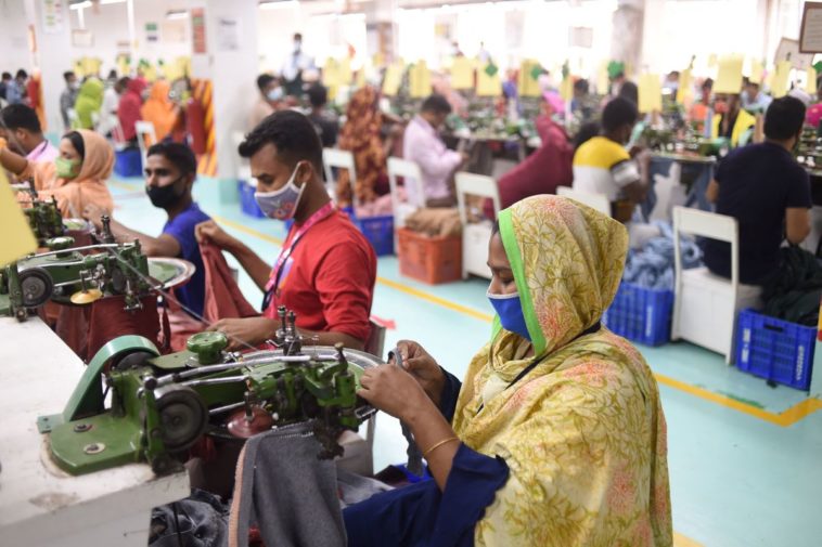 Employees work in a garment factory in Gazipur, Bangladesh, on March 15, 2021.