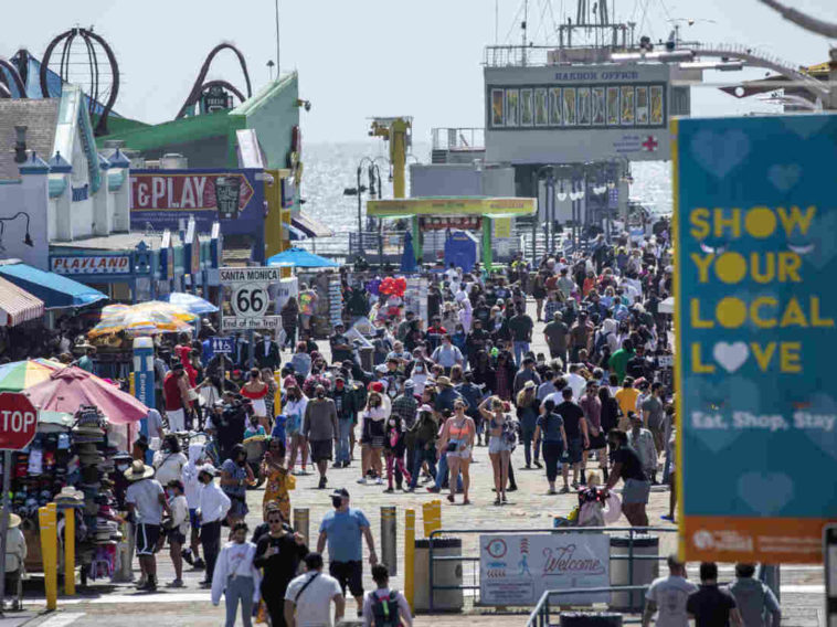 The Santa Monica Pier welcomed outdoor visitors on Monday as Los Angeles County entered the less-restrictive orange tier. The following day, California Gov. Gavin Newsom announced a target statewide reopening date of June 15, provided certain public health criteria are met.
