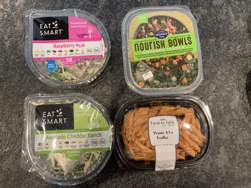 Here’s what I found for lunch: The prepared salad area displayed about 30 different packaged salads. I grabbed the Eat Smart Superfood Selections Raspberry Acai bowl which filled my salad bowl with just 200 calories of tasty nutritional crunch. With a fork packed in this is the perfect on-the-go quickie lunch, and may become my go-to meal carry on when I fly again. For another day, there’s a vegan selection of cheese, soups, “meats” and Mann’s Nourish Bowls. (The hot Southwest Chipotle veggie bowl calls to me.) For my omnivore millennial, a prepared Superfood avocado salad with a side of penne vodka satisfied. Fresh sandwiches, wraps, and pastries are also an option, located in the case of essential grocery staples like milk, bread, and eggs.