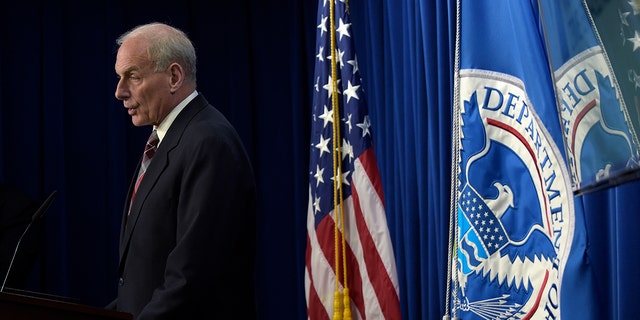 Then-Homeland Security Secretary John Kelly announces the opening of the new Victims of Immigration Crime Engagement (VOICE) office during a news conference at Immigration and Customs Enforcement (ICE) in Washington, April 20, 2017. (Associated Press)