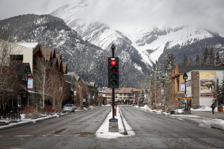 The empty streets of Banff in March, 2020. Local businesses say they’ll be sorely missing international tourists for a second peak summer season in a row.