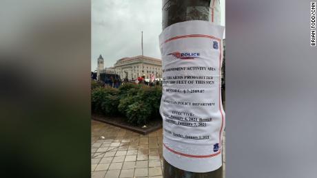 In the days leading up to Wednesday’s planned march, police posted signs declaring areas where they expect protesters gun-free zones between Monday and Thursday. “ALL firearms prohibited within 1000 feet of this sign,” they read, taped to light poles.