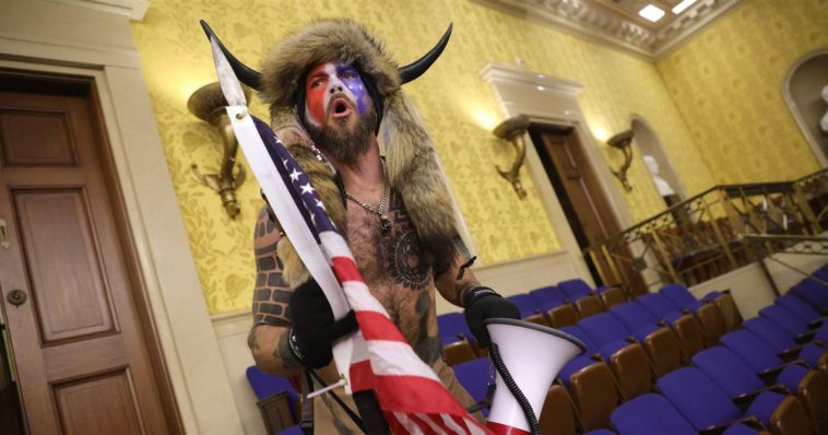 Jacob Chansley, 33, also known as Jake Angeli, was one of the people photographed extensively at the riot. He wore a fur hat with horns and painted his face with the colors of the American flag.